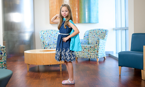 Ella Grace’s journey began with a mysterious limp, leading to a four-year search for answers. Multiple surgeries and misdiagnoses left her family feeling lost. After finally getting a one-in-a-million diagnosis of Chronic Recurrent Multifocal Osteomyelitis (CRMO), she was relieved to hear that UF Health Shands Children’s Hospital could provide what she needed for her rare bone disease. Though incurable, the hospital’s specialized care and treatment plan brought stability and progress. Today, Ella Grace is empowered, facing her challenges with resilience and finding comfort in the hospital’s warm embrace.