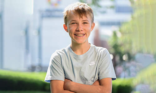 Rudy was born with a large birthmark that posed a risk of becoming cancerous. Early attempts to remove it at an out-of-town hospital led to mobility issues, requiring specialized care. At Dayton Children’s Hospital, Rudy found a team dedicated to preserving his active lifestyle. Through multiple surgeries and unwavering support, Rudy’s confidence grew, even inspiring him to consider a future in plastic surgery.